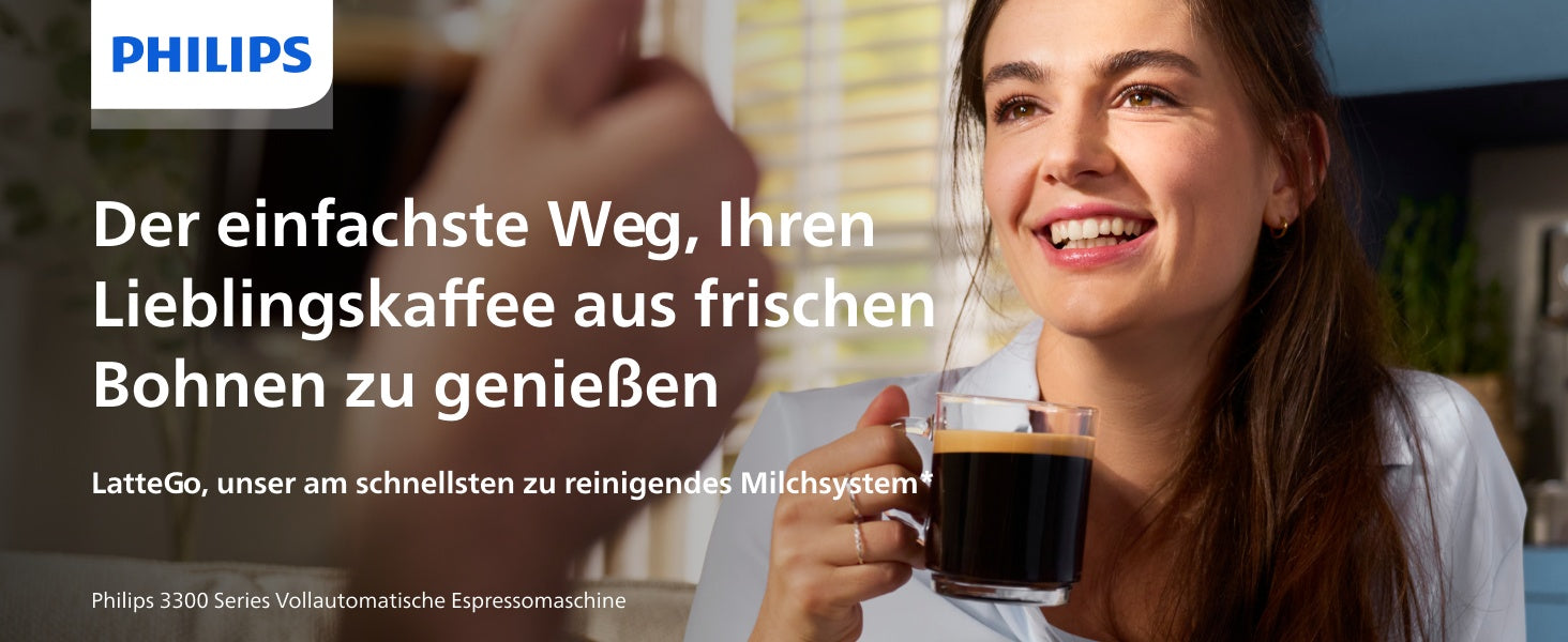Philips Series 3300 Kaffeevollautomat EP3347/90 - 6 Getränke, Farb Touchscreen Display, LatteGo Milchsystem, SilentBrew, Keramikmahlwerk, AquaClean Filter - Schwarz/Chrom